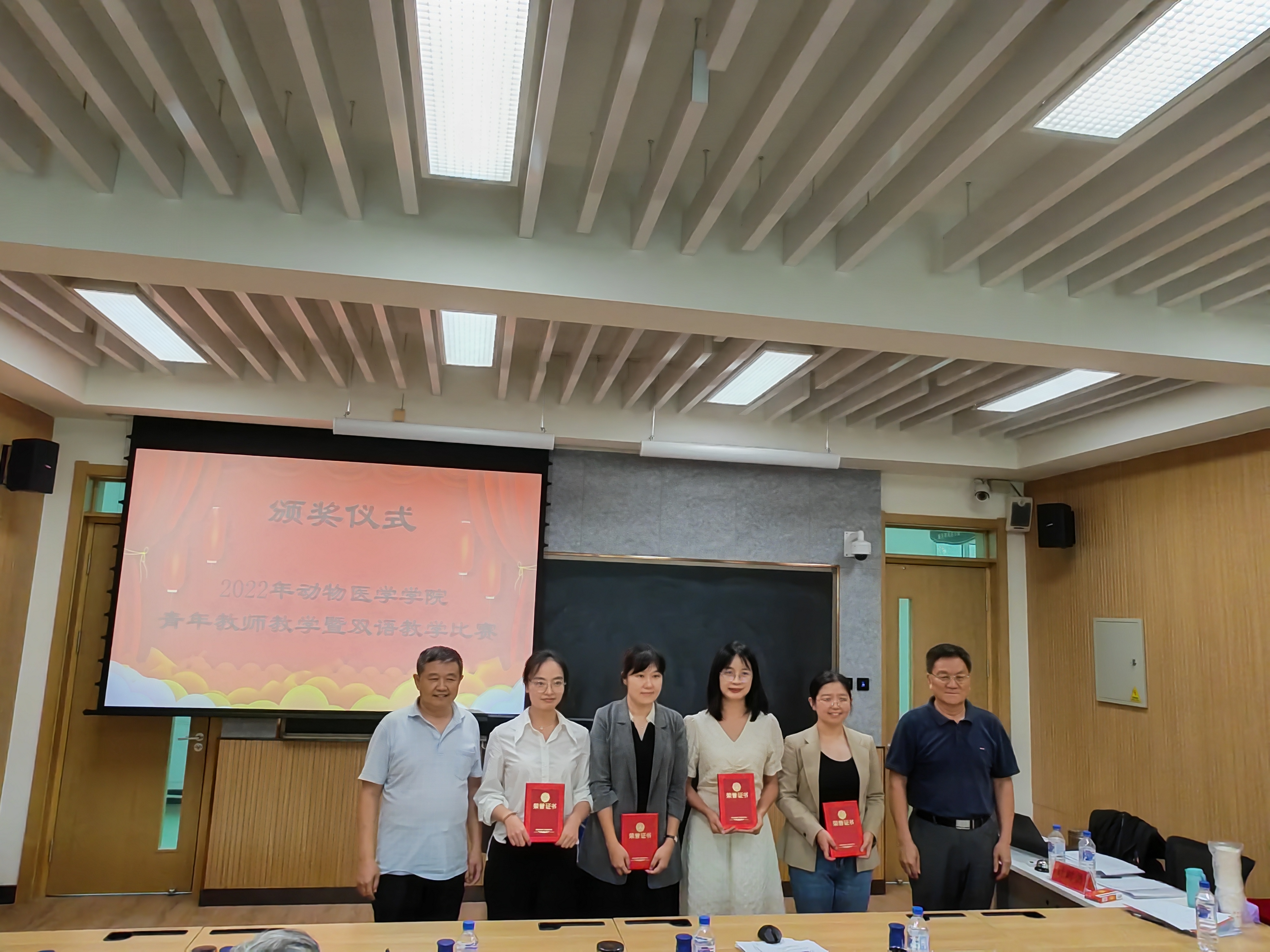 督导专家和系主任为获奖的教师们颁发了荣誉证书。双语组徐小洪获得了一等奖;青年组郭艺迪、王晓岑、宋宇宁获得了一等奖;隋婷婷等教师分别获得了二等奖。评审专家王哲教授代表评审团13位评委给予了此次比赛的高度肯定。