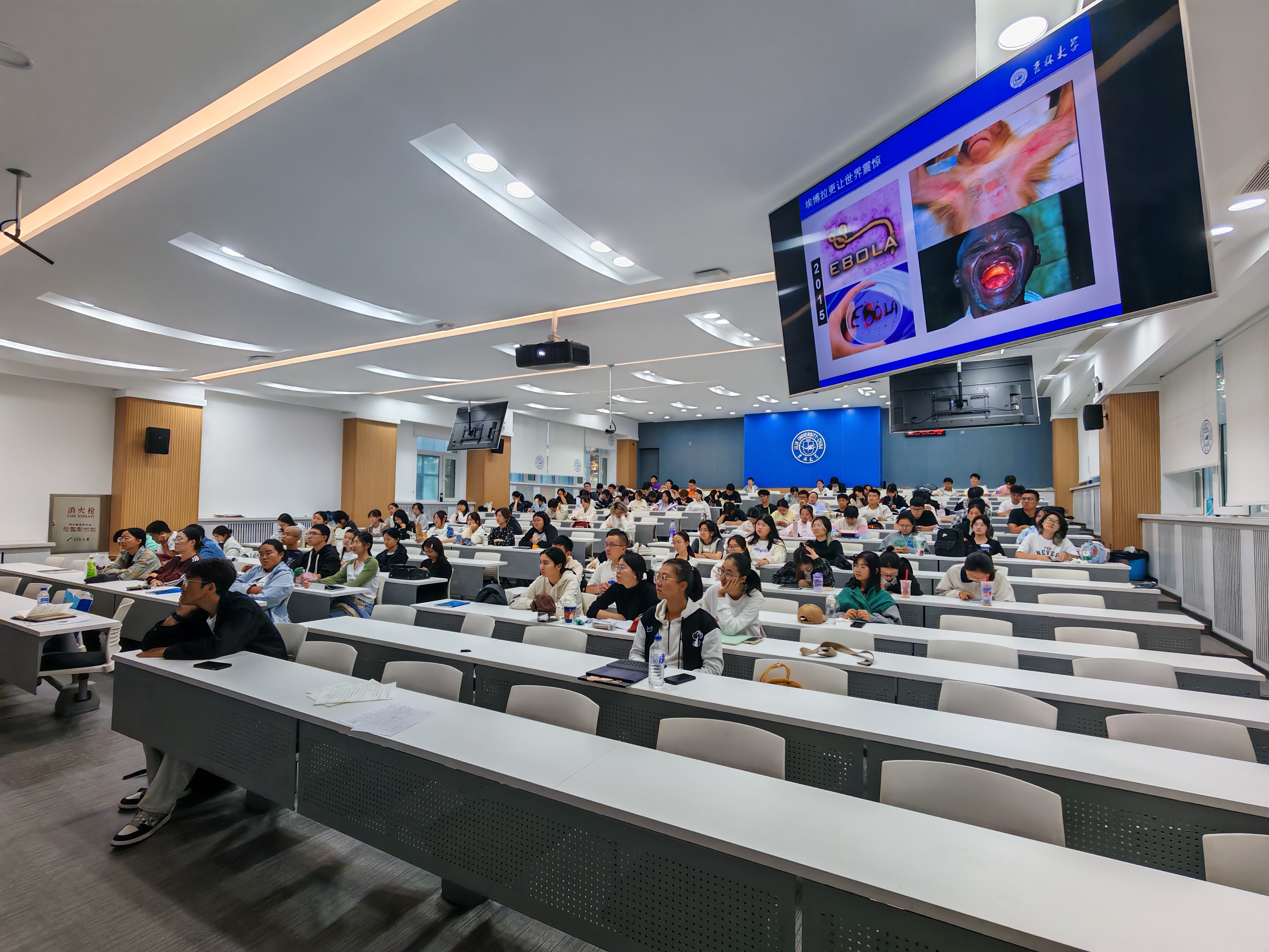 国家“双一流”重点建设学科《人与动物共有医学》-动物医学学科带头人刘明远教授主讲,2024级动物医学新生、开放交流选课同学共计130余人参加。