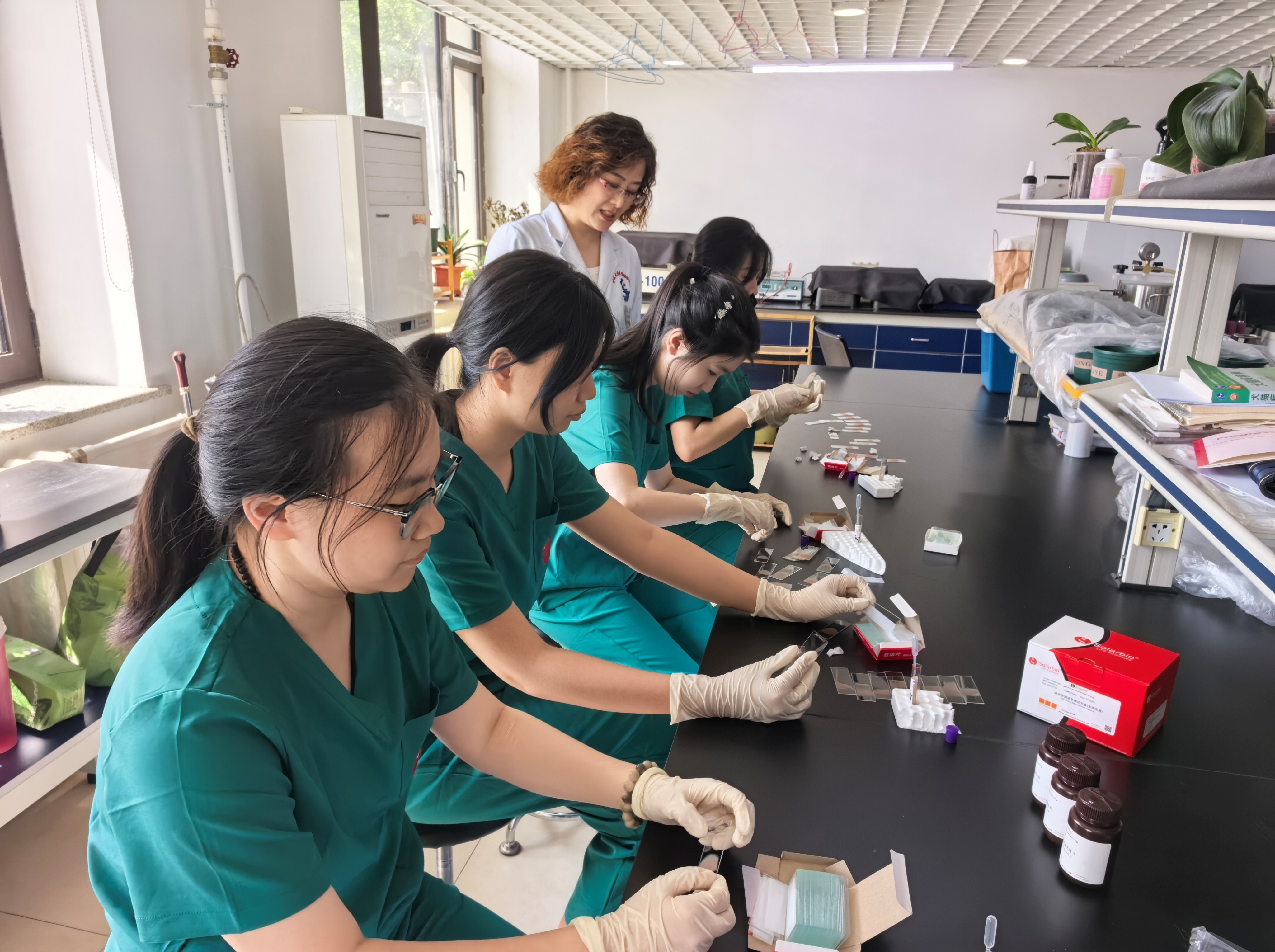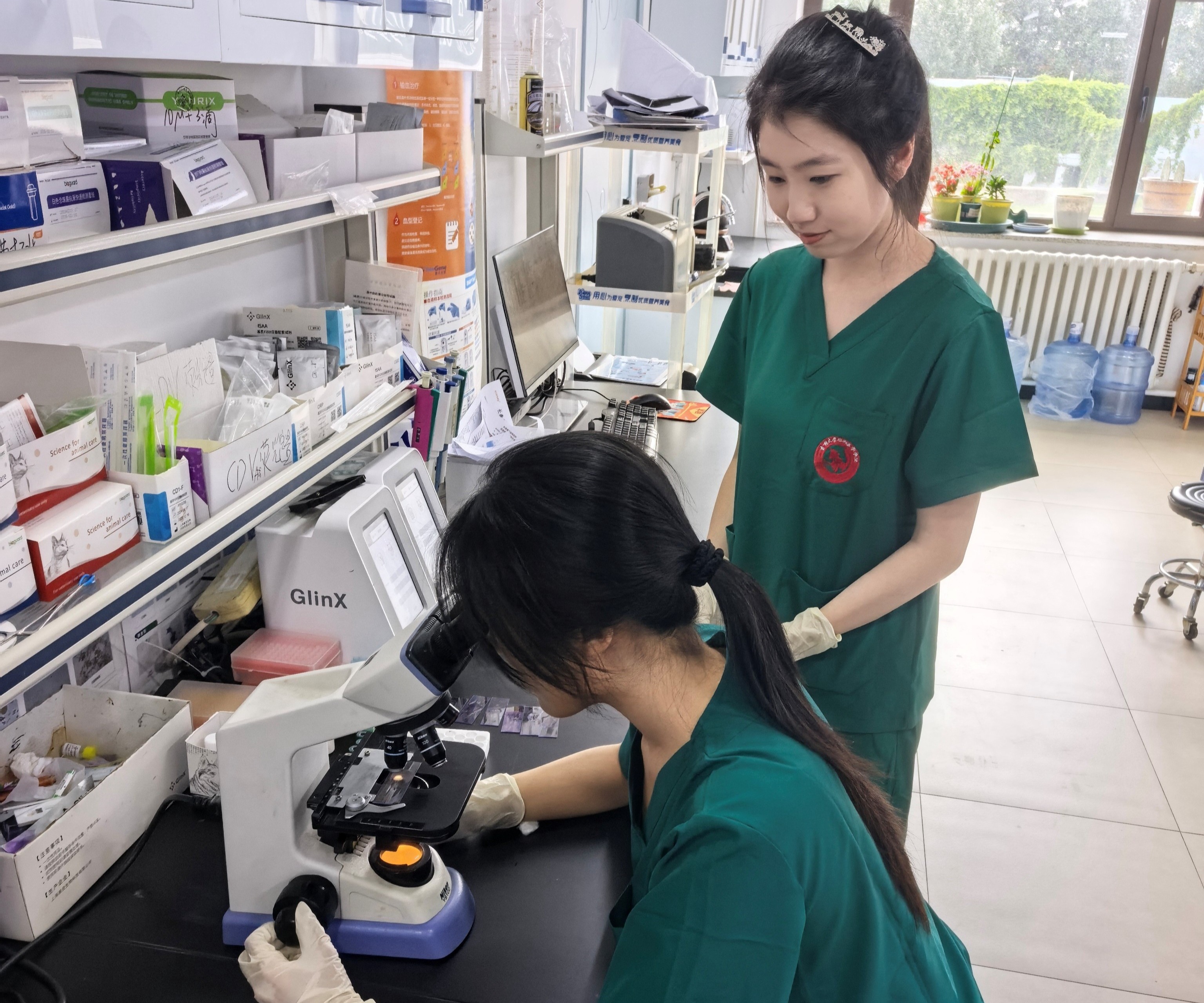 在充分尊重选手个人意愿的前提下,指导老师根据团队内部四位同学的特点进行了分工调整,确定每个人的发展方向,随后进行了短期的加强训练。精诚所至,金石为开。选手们的配合愈发默契,手术的质与量取得可喜的突破,团队成员的素质亦稳健提升。在此期间,团队增加了血涂片的制作练习。这是一门熟能生巧的学问。一滴血,一推片,诠释了何为大道至简。在声声鼓励中,我们将指导老师传授的关于血液体积、推片角度与速度的秘诀融入实践,推出了闪耀着幸福光芒的羽状缘。随着期末考落下帷幕,暑假悄然而至。四位自诩雌鹰的队员并不贪恋闲适慵懒的盛夏,决定将假期塑造成有意义的模样。她们自愿留校参与暑期培训,增长知识、增进技艺。奋斗是青春的底色。李大钊先生曾说过:青年之文明,奋斗之文明也,与境遇奋斗,与时代奋斗,与经验奋斗。故青年者,人生之王,人生之春,人生之华也。习总书记指示:青春由磨砺而出彩,人生因奋斗而升华。我们相信这段旅途会成为四位选手毕生珍藏的记忆。也希望这次赛事培训能够在提高动物医学类专业的教学水平、提升大学生在小动物临床工作中的理论功底和实践技能、培养兽医学人才的征途中留下属于吉大动医人的足迹。