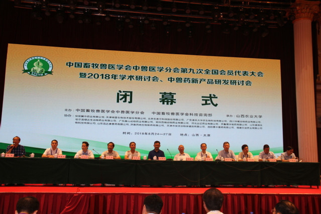 2018年8月24日-27日,中国畜牧兽医学会中兽医学分会第九次全国会员代表大会暨2018年学术研讨会中兽药新产品研发研讨会在被誉为“华夏文明摇篮”的山西省太原市隆重召开,大会由中国畜牧兽医学会中兽医学分会主办,山西农业大学承办,来自全国各地高校、科研院所、企业、动物医院等490余人参加会议。