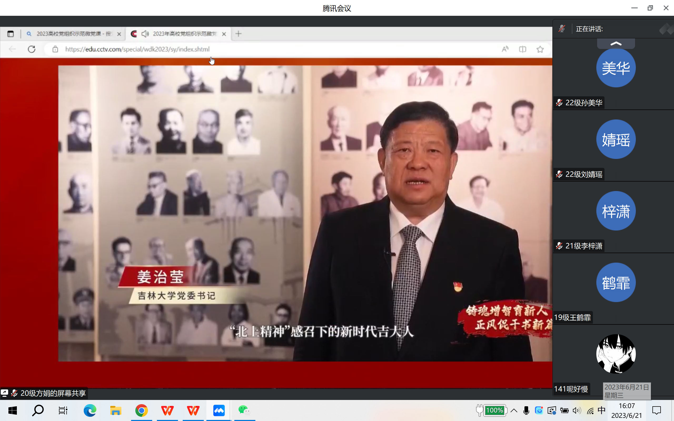 通过本次“微党课”学习,学院师生受到了一次深刻的党性锻炼和难忘的精神洗礼,纷纷表示要认真学习贯彻习近平新时代中国特色社会主义思想,以先生们一路向北、扎根东北的“北上精神”为引领,牢记总书记的殷切嘱托,厚植爱党爱国情怀,勇担时代使命,在推动学院高质量发展道路上奋勇争先,在推进中国式现代化新征程中贡献吉大动医人的力量。