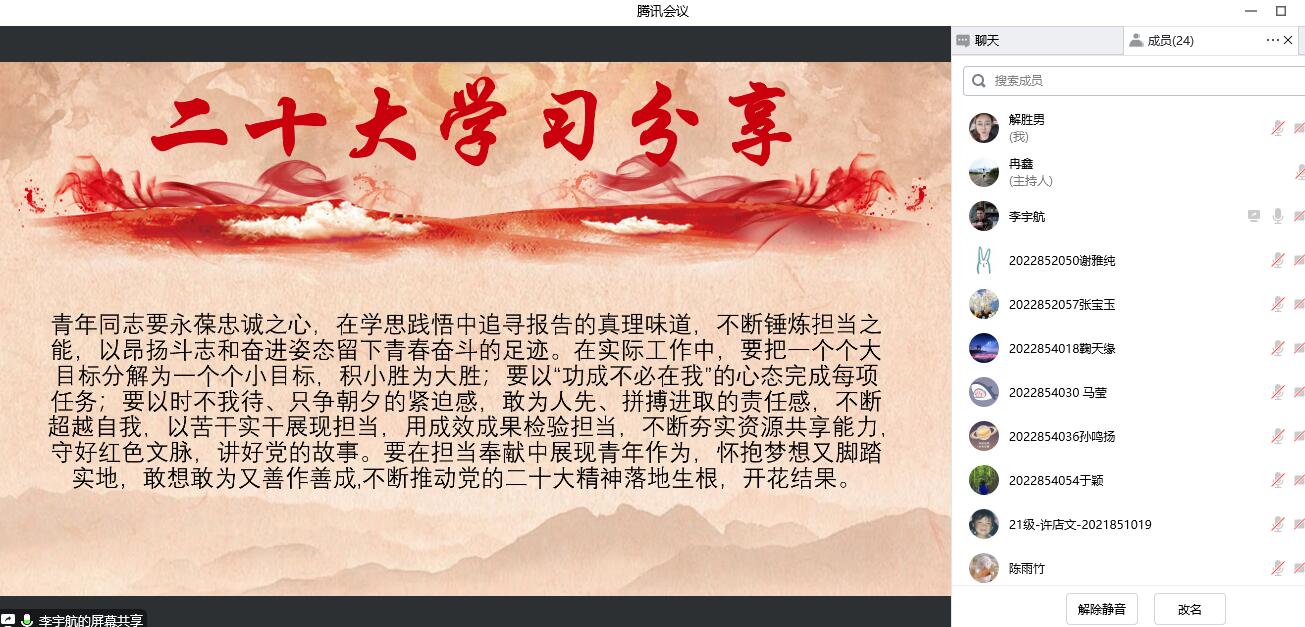 基础兽医学研究生学生第一党支部通过线上方式于2022年12月15日组织了党的二十大精神学习微党课。