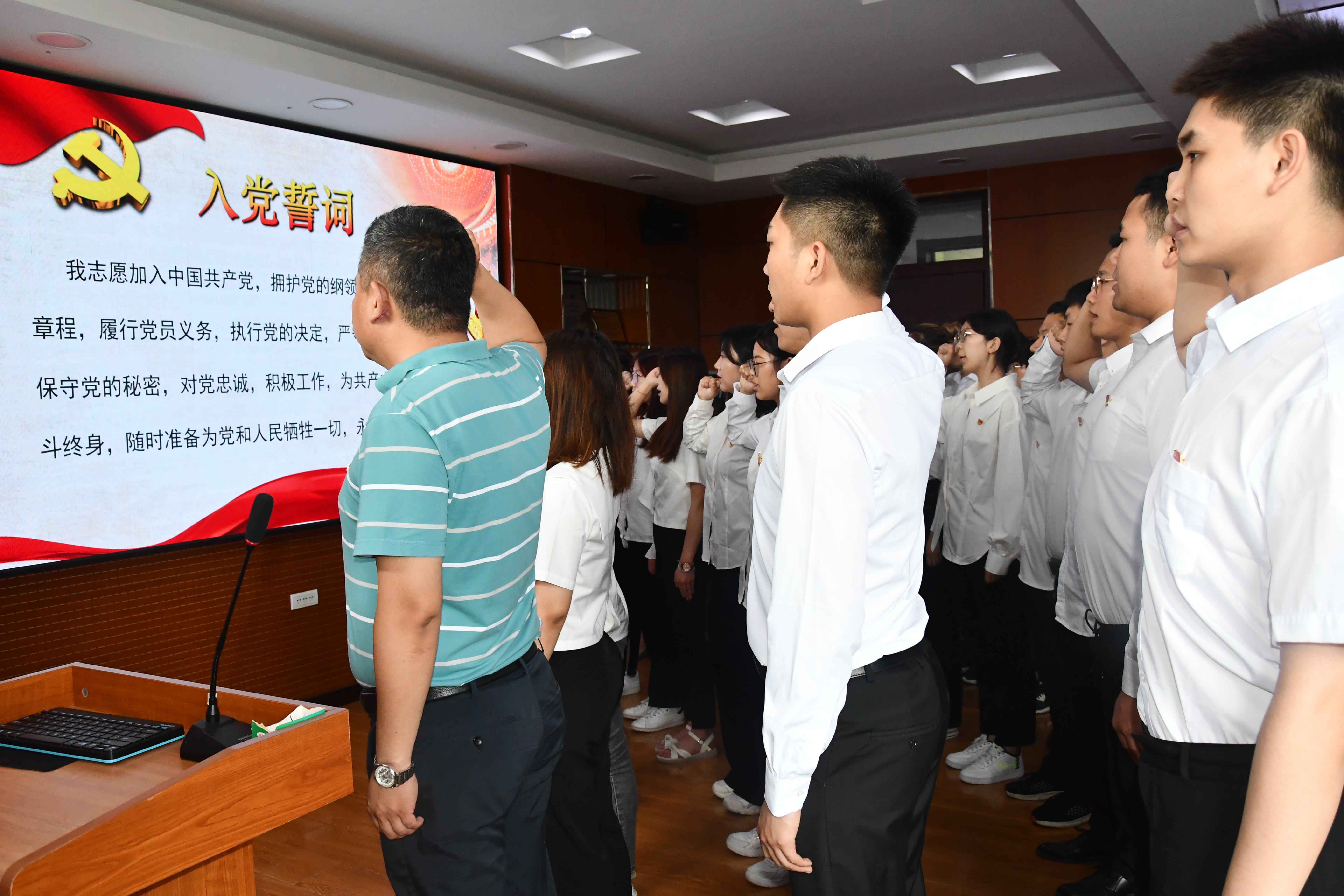 党委在兽医楼三楼会议室召开了庄严而隆重的新党员入党宣誓活动。学院党委副书记秦明、党委办公室负责人解胜男参加了此次活动。
