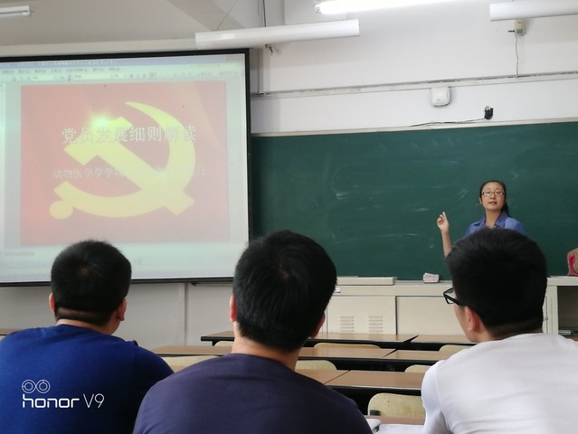 基础兽医学系、预防兽医学系、临床兽医学系3个研究生党支部联合,在科学讲堂202教室进行一月一度的党日学习活动,会议由基础兽医系支部书记解胜男主持。