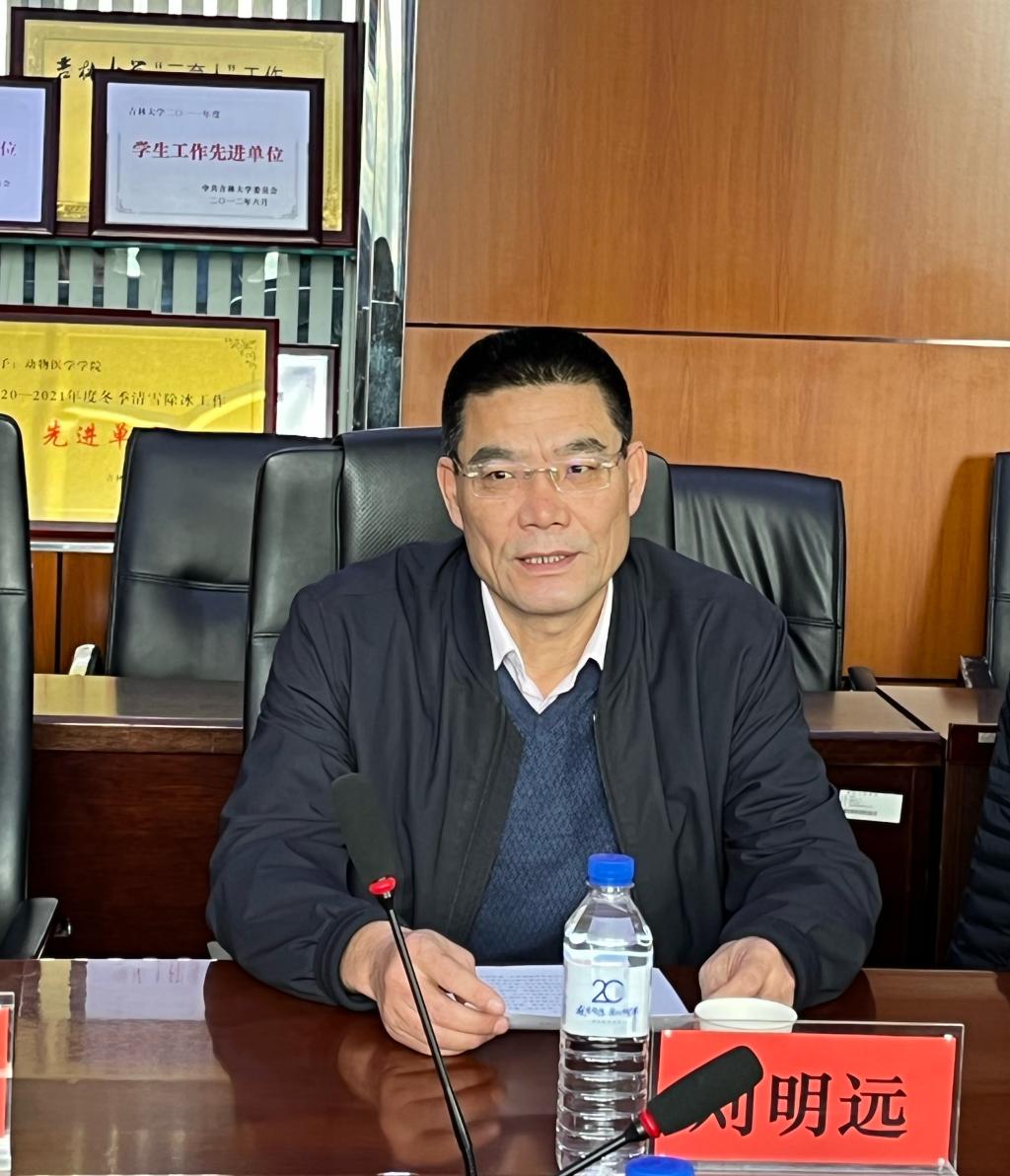 随后,在学院三楼会议室召开调研座谈会。刘明远院长对李铁刚局长一行的到来表示热烈欢迎,并从学院的学科平台、师资团队、研究特色、社会服务能力等方面进行了详细的介绍,并从如何发挥人才和科技优势,全面融入长春市畜牧兽医发展,全面对接肉牛产业工程、全面支持动物疫病防控等表达了美好愿景。
