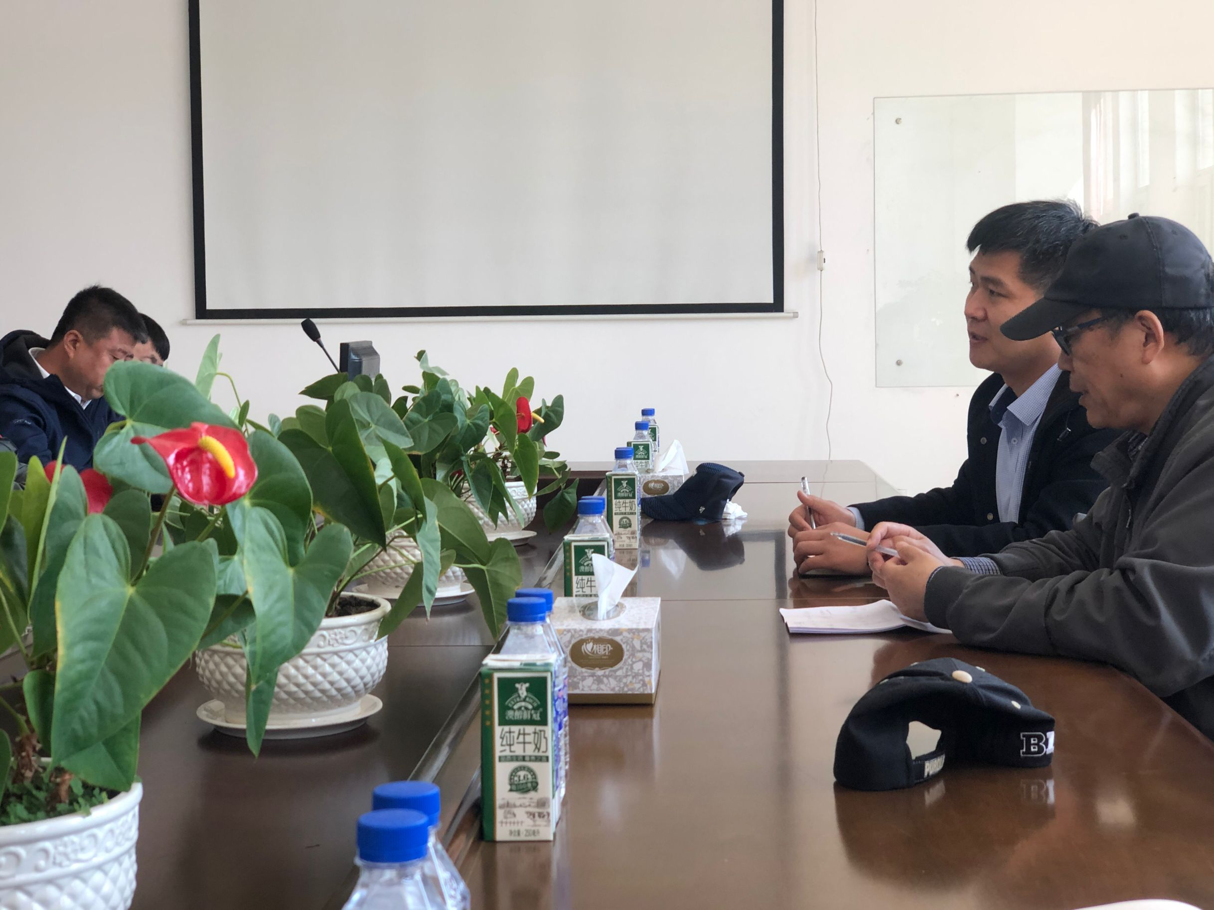 一行的到来表示热烈欢迎,简述了牧场的发展历程和现有的条件,介绍了牧场的基本养殖情况,提出目前牛场急需解决的问题,牛群存在早产现象,疑似牛病毒性腹泻病毒(BVDV)感染。该病毒感染后主要引起动物腹泻、黏膜溃烂、流产、产死胎或畸形胎,持续性感染等。本病毒可以感染牛、羊、猪和鹿等野生动物,给养殖业造成极大的经济损失。为解决BVDV病毒带来的损失,专家教授们积极为企业献策,提出方案,有望解决这一难题,挽回牛场经济损失。