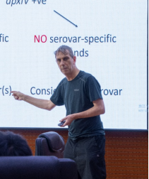9月20日,Paul Langford教授还与雷连成教授课题组的师生进行深入细致的学术交流。Paul Langford教授作了主题为“Pig lung pathogen diagnostics: From Actinobacillus pleuropneumoniae serotyping to on-farm diagnostics for the porcine respiratory disease complex (PRDC)”的学术报告,与在场师生积极互动,耐心细致地答疑解惑。
