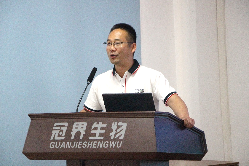 随后,技术中心禽苗研究室主任李俊辉向学生们详细介绍了吉林冠界生物技术有限公司的基本情况,包括公司的主要产品、员工福利和拷贝漫画等。他指出,公司始终秉持创新、诚信、合作和责任的核心价值观,致力于推动生物技术的进步和应用。