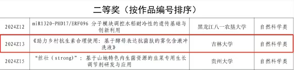 研究生科研办主任李赫老师和研究生科研办张茜老师带队、韩文瑜教授和冯新教授指导的研究生团队(曹原、张涵、刘月、柴晓东、杜晓莹、王秋霖)申报的《助力乡村抗生素合理使用——基于酵母表达抗菌肽的雾化含漱冲洗液》项目在此次竞赛中斩获自然科学组二等奖,为拷贝漫画
