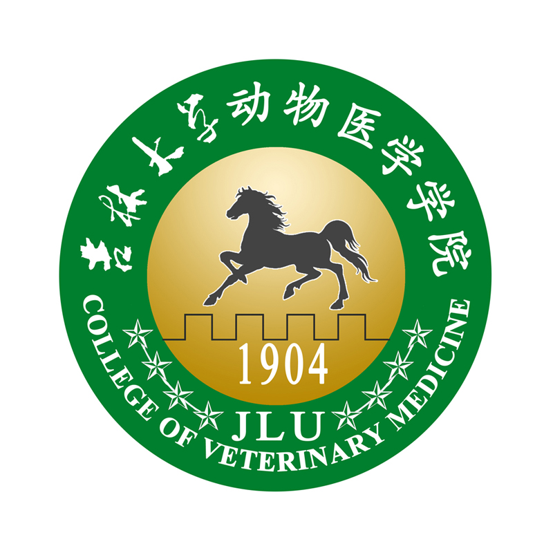 拷贝漫画 院徽以马、长城、八颗相连的五角星、“JLU”、“拷贝漫画 ”、“college of veterinary medicine”、“1904”等元素组成。